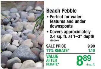 The price of Beach Pebble can be found at the top of the page, together with the dates during which the offer is available. You can also check the price in the current Menards weekly ad or on the Menards website. Promotional offers assure you of buying Menards products at the lowest price.