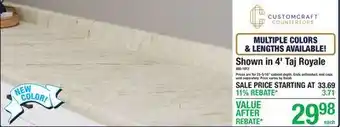CUSTOMCRAFT COUNTER TOPS MULTIPLE COLORS & LENGTHS AVAILABLE! Shown in 4' Taj Royale deal in the weekly ad of Menards