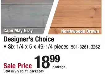 The Designer's Choice is now available with a discount at Menards. On this page, you can find all information about the current prices, the conditions of the deal, and the duration of the deal. Don't forget to also check out comparable offers and deals for Designer's Choice, so you can always make the most cost-effective choice.The discount campaign for Designer's Choice runs from 11-01-2026 to 24-01-2026. Has the deal ended? No problem, you can always view other similar offers. You can also follow the product category to stay informed as soon as Designer's Choice is back on offer at Menards. By comparing Designer's Choice offers, you can always ensure that you make your purchases at the lowest possible price. Keep checking our site regularly to see if Designer's Choice will soon be offered again with an attractive discount.
