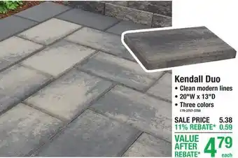 Menards offers a wide collection of products, besides the Kendall Duo. Keep an eye on the weekly Menards weekly ad to find the best offers and promotions. Besides Kendall Duo, you can also find the following offers: Kendall, Pretzel Duo Sandwiches & Heel Repair Duo - $23 Value!.