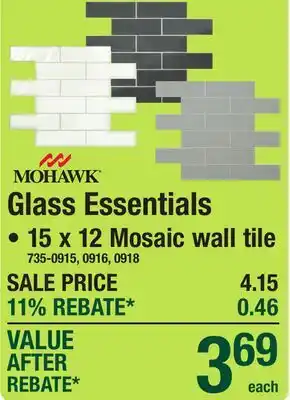The price of MOHAWK Glass Essentials WATERPROOF TILE can be found at the top of the page, together with the dates during which the offer is available. You can also check the price in the current Menards weekly ad or on the Menards website. Promotional offers assure you of buying Menards products at the lowest price.