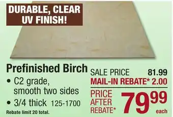 The price of Prefinished Birch can be found at the top of the page, together with the dates during which the offer is available. You can also check the price in the current Menards weekly ad or on the Menards website. Promotional offers assure you of buying Menards products at the lowest price.