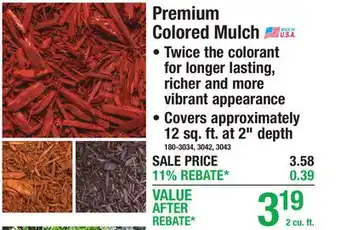 The price of Premium Colored Mulch can be found at the top of the page, together with the dates during which the offer is available. You can also check the price in the current Menards weekly ad or on the Menards website. Promotional offers assure you of buying Menards products at the lowest price.