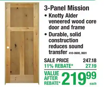 The price of READY-TO-FINISH 3-Panel Mission can be found at the top of the page, together with the dates during which the offer is available. You can also check the price in the current Menards weekly ad or on the Menards website. Promotional offers assure you of buying Menards products at the lowest price.