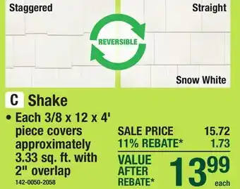 The price of SHERWIN WILLIAMS Shake can be found at the top of the page, together with the dates during which the offer is available. You can also check the price in the current Menards weekly ad or on the Menards website. Promotional offers assure you of buying Menards products at the lowest price.