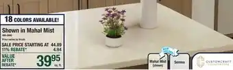 The price of Shown in Mahal Mist CUSTOM QUARTZ COUNTERTOPS can be found at the top of the page, together with the dates during which the offer is available. You can also check the price in the current Menards weekly ad or on the Menards website. Promotional offers assure you of buying Menards products at the lowest price.