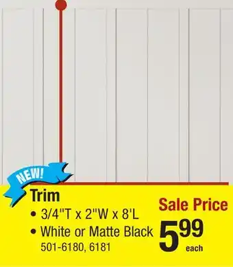 The Trim is now on sale at Menards, valid from 04-02-2026 to 14-02-2026. Check out the latest Menards weekly ad for more exclusive offers. Order Trim online via the Menards website or buy it at a nearby store. At Adspecials.us, you'll always find the best Trim deals. Compare the current offers to see if Trim will be featured in next week’s weekly ad. We post the weekly ads quickly, so you can plan your shopping smartly and stay updated on the latest Trim deals, discovering which stores have the best offers. Adjust your shopping list and check out the Menards weekly ad for next week for exclusive in-store promotions.Frequently asked questions about Trim