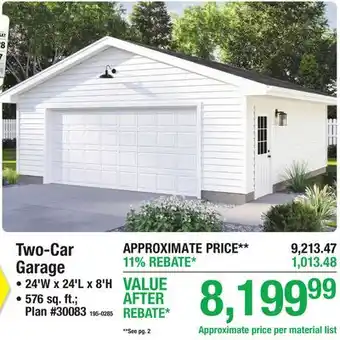 The price of Two-Car Garage can be found at the top of the page, together with the dates during which the offer is available. You can also check the price in the current Menards weekly ad or on the Menards website. Promotional offers assure you of buying Menards products at the lowest price.