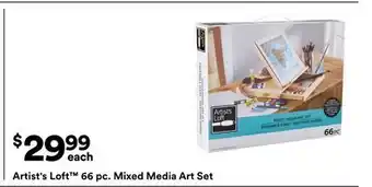 Michaels offers a wide collection of products, besides the Artist's Loft 66 pc. mixed media Art Set. Keep an eye on the weekly Michaels weekly ad to find the best offers and promotions. Besides Artist's Loft 66 pc. mixed media Art Set, you can also find the following offers: Artist's Loft 90 pc. mixed media Studio easel Art Set, Artist's Loft 53 pc. Drawing Art Set & 3 Pc. Comforter Set.