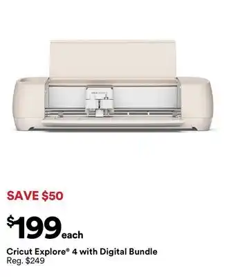 This Cricut explore 4 with Digital Bundle is now on deal at Michaels. All information about current prices, promotional conditions, and durations can be found on this page. Also check out other comparable deals and promotions related to Cricut explore 4 with Digital Bundle, so you can always make the most cost-effective choice.The duration of the Cricut explore 4 with Digital Bundle deal is from 11-01-2026 to 17-01-2026. If the deal is no longer valid, you can look at other comparable offers. You can also follow the product category to stay informed as soon as Cricut explore 4 with Digital Bundle is on deal again at Michaels. By comparing Cricut explore 4 with Digital Bundle deals, you'll know whether it's wise to wait on a purchase because it might have been cheaper or might come up cheaper in a future deal. So keep an eye on our site to see if Cricut explore 4 with Digital Bundle appears next week with a significant discount in the flyer.