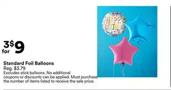 The Standard Foil Balloons is now on sale at Michaels, valid from 26-04-2026 to 02-05-2026. Check out the latest Michaels weekly ad for more exclusive offers. Order Standard Foil Balloons online via the Michaels website or buy it at a nearby store. At Adspecials.us, you'll always find the best Standard Foil Balloons deals. Compare the current offers to see if Standard Foil Balloons will be featured in next week’s weekly ad. We post the weekly ads quickly, so you can plan your shopping smartly and stay updated on the latest Standard Foil Balloons deals, discovering which stores have the best offers. Adjust your shopping list and check out the Michaels weekly ad for next week for exclusive in-store promotions.Frequently asked questions about Standard Foil Balloons