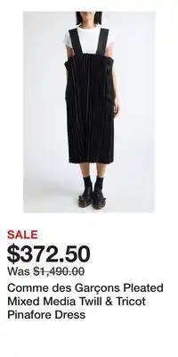 Current Comme des Garçons Pleated Mixed Media Twill & Tricot Pinafore Dress deal at Nordstrom from 25-02 until 3-03.