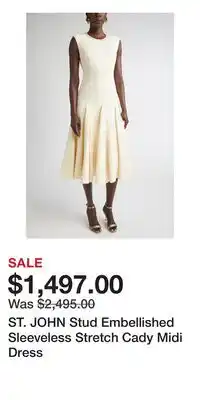 This ST. JOHN Stud Embellished Sleeveless Stretch Cady Midi Dress is now on deal at Nordstrom. All information about current prices, promotional conditions, and durations can be found on this page. Also check out other comparable deals and promotions related to ST. JOHN Stud Embellished Sleeveless Stretch Cady Midi Dress, so you can always make the most cost-effective choice.The duration of the ST. JOHN Stud Embellished Sleeveless Stretch Cady Midi Dress deal is from 11-03-2026 to 17-03-2026. If the deal is no longer valid, you can look at other comparable offers. You can also follow the product category to stay informed as soon as ST. JOHN Stud Embellished Sleeveless Stretch Cady Midi Dress is on deal again at Nordstrom. By comparing ST. JOHN Stud Embellished Sleeveless Stretch Cady Midi Dress deals, you'll know whether it's wise to wait on a purchase because it might have been cheaper or might come up cheaper in a future deal. So keep an eye on our site to see if ST. JOHN Stud Embellished Sleeveless Stretch Cady Midi Dress appears next week with a significant discount in the flyer.