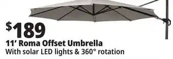 11' Roma Offset Patio Umbrella with Solar LED Lights Beige offers and online specials, straight from the current Ocean State Job Lot ad