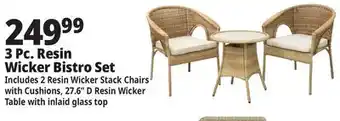 This offer is available in various stores, view all products to get the cheapest 3 Pc. Resin Wicker Bistro Set. If you'd like to find out whether this product has a bigger discount in another store, check the category 'Department Stores'. You may also find these offers interesting: 4 Pc. Resin Wicker Furniture Set, 3 Piece Resin Wicker Swivel Set & 4-Piece Resin Wicker Deep Seating Set.