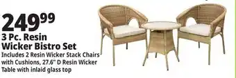 This offer is available in various stores, view all products to get the cheapest 3-Piece Resin Wicker Bistro Set Tan. If you'd like to find out whether this product has a bigger discount in another store, check the category 'Department Stores'. You may also find these offers interesting: 3 Piece Resin Wicker Swivel Set, 4-Piece Resin Wicker Deep Seating Set & 4-Piece Wicker Furniture Set.