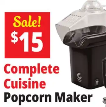This offer is available in various stores, view all products to get the cheapest Complete Cuisine Popcorn Maker. If you'd like to find out whether this product has a bigger discount in another store, check the category 'Department Stores'. You may also find these offers interesting: Complete Cuisine S'More Maker, Complete Cuisine 12 Cup Programmable Coffee Maker & Complete Cuisine Single Serve Coffee Maker With Mug.