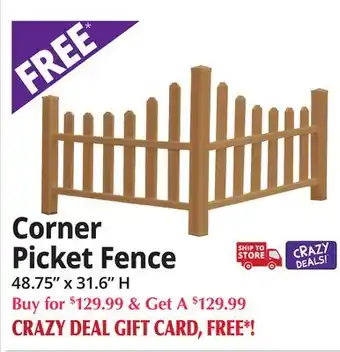 This offer is available in various stores, view all products to get the cheapest Corner Picket Fence. If you'd like to find out whether this product has a bigger discount in another store, check the category 'Department Stores'. You may also find these offers interesting: Garden Fence, Corner Booth Pizza & 4-Tier Corner Storage Cart with Wheels.