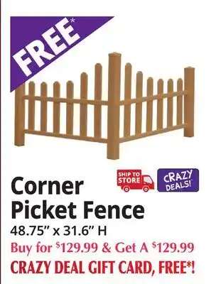 This offer is available in various stores, view all products to get the cheapest Corner Picket Fence. If you'd like to find out whether this product has a bigger discount in another store, check the category 'Department Stores'. You may also find these offers interesting: Garden Fence, Corner Booth Pizza & Corner Booth Italian Beef.