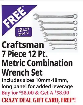 Craftsman 7 Piece 12 Pt. Metric Combination Wrench Set offers and online specials, straight from the current Ocean State Job Lot ad
