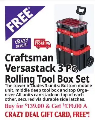 Craftsman Versastack 3 Pc. Rolling Toll Box Set Discount at Ocean State Job Lot