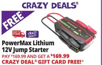 This offer is available in various stores, view all products to get the cheapest Lithium 12V Jump Starter. If you'd like to find out whether this product has a bigger discount in another store, check the category 'Department Stores'. You may also find these offers interesting: PowerMax Lithium 12V Jump Starter, Lithium Jump Starter & Inflator & Starter Pots.