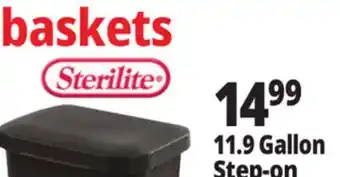 This offer is available in various stores, view all products to get the cheapest Sterilite Step-On Black Wastebasket 11.9 Gal. If you'd like to find out whether this product has a bigger discount in another store, check the category 'Department Stores'. You may also find these offers interesting: Sterilite Step-On 2.7 Gal Wastebasket, Sterilite Undersink Wastebasket & Sterlite 3.4 Gal. Weave Wastebasket.