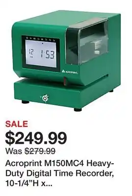 Current Acroprint M150MC4 Heavy-Duty Digital Time Recorder, 10-1/4H x 9-1/2W x 11D, Green deal at Office Depot from 16-03 until 22-03.