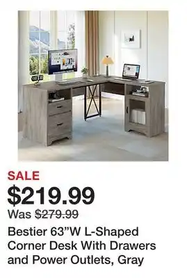 Bestier 63W L-Shaped Corner Desk With Drawers and Power Outlets, Gray deal in the weekly ad of Office Depot