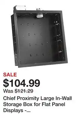 In which store will Chief Proximity Large In-Wall Storage Box for Flat Panel Displays - Black - Storage box - - PAC526 be on sale next week? These are some of the questions we get asked a lot. It’s only normal, nobody likes to pay too much! Our team keeps an eye on all deals and lists them online as soon as possible. So you can customize your (shopping) list with this week's offers and those of next week. Make sure to check next week’s Office Depot ad, some of the specials are only available next week or online.Frequently asked questions about Chief Proximity Large In-Wall Storage Box for Flat Panel Displays - Black - Storage box - - PAC526