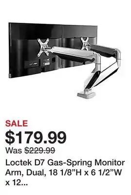 Loctek D7 Gas-Spring Monitor Arm, Dual, 18 1/8H x 6 1/2W x 12 13/16D, Silver deals and online offers from the current Office Depot weekly ad