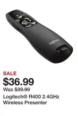 Logitech R400 2.4GHz Wireless Presenter deals and online offers from the current Office Depot weekly ad