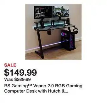 Check for the cheapest product among all the offers! If you want to know if Office Depot has the highest discount for RS Gaming Venno 2.0 RGB Gaming Computer Desk with Hutch & Integrated Power, Black, BIFMA Compliant, compare it on the Topic page or with other stores.
