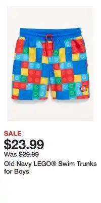 Old Navy LEGO Swim Trunks for Boys offers and online specials, straight from the current Old Navy ad