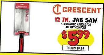 This offer is available in various stores, view all products to get the cheapest 12 IN. JAB SAW. If you'd like to find out whether this product has a bigger discount in another store, check the category 'Wholesale'. You may also find these offers interesting: DEWALT Reciprocating Saw, FISKARS BOW SAW & DEWALT Circular Saw.