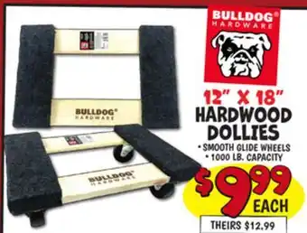Ollie's offers a wide collection of products, besides the 12 X 18 HARDWOOD DOLLIES. Keep an eye on the weekly Ollie's weekly ad to find the best offers and promotions. Besides 12 X 18 HARDWOOD DOLLIES, you can also find the following offers: 18 X 30 HARDWOOD DOLLY, Bar-S Hardwood Bacon & First Street Hardwood Smoked Sliced Bacon.