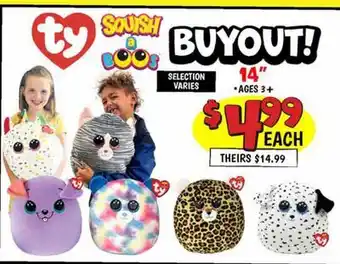 In which store will 14 SQUISH A BOOS be on sale next week? These are some of the questions we get asked a lot. It’s only normal, nobody likes to pay too much! Our team keeps an eye on all deals and lists them online as soon as possible. So you can customize your (shopping) list with this week's offers and those of next week. Make sure to check next week’s Ollie's ad, some of the specials are only available next week or online.Frequently asked questions about 14 SQUISH A BOOS