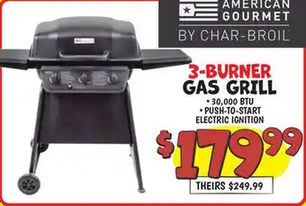 This offer is available in various stores, view all products to get the cheapest AMERICAN GOURMET 3-BURNER GAS GRILL. If you'd like to find out whether this product has a bigger discount in another store, check the category 'Wholesale'. You may also find these offers interesting: 4-Burner Gas Grill, Nexgrill 4-Burner Gas Grill & Performance 4-Burner Gas Grill.
