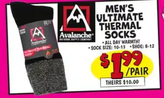 AVALANCHE MEN'S ULTIMATE THERMAL SOCKS Discount at Ollie's