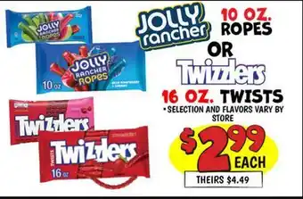 JOLLY rancher 10 0Z ROPES OR Twizzlers 16 OZ. TWISTS