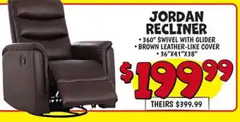 In which store will JORDAN RECLINER be on sale next week? These are some of the questions we get asked a lot. It’s only normal, nobody likes to pay too much! Our team keeps an eye on all deals and lists them online as soon as possible. So you can customize your (shopping) list with this week's offers and those of next week. Make sure to check next week’s Ollie's ad, some of the specials are only available next week or online.Frequently asked questions about JORDAN RECLINER