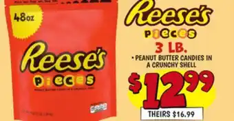 In which store will Reese's Pieces 3 LB be on sale next week? These are some of the questions we get asked a lot. It’s only normal, nobody likes to pay too much! Our team keeps an eye on all deals and lists them online as soon as possible. So you can customize your (shopping) list with this week's offers and those of next week. Make sure to check next week’s Ollie's ad, some of the specials are only available next week or online.Frequently asked questions about Reese's Pieces 3 LB