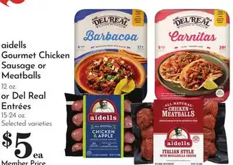 aidells Gourmet Chicken Sausage or Meatballs 12 oz. or Del Real Entrées 15-24 oz Discount at Pavilions