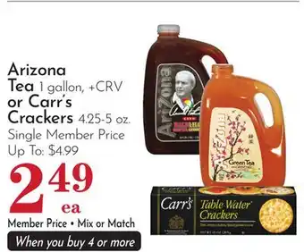Arizona Tea 1 gallon, or Carr's Crackers 4.25-5 oz Discount at Pavilions
