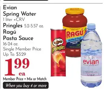 Evian Spring Water 1 liter Pringles 5.2-5.57 oz. Ragú Pasta Sauce 16-24 oz Deal at Pavilions