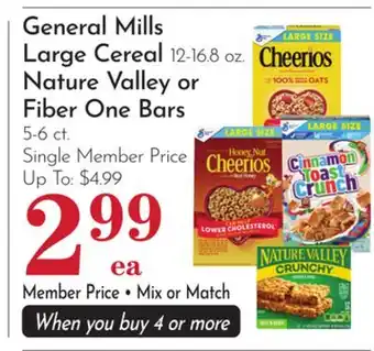 General Mills Large Cereal 12-16.8 oz. Nature Valley or Fiber One Bars 5-6 ct deals and online offers from the current Pavilions weekly ad