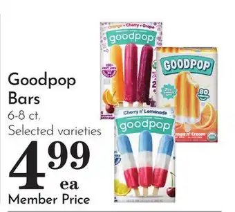 The price of Goodpop Bars can be found at the top of the page, together with the dates during which the offer is available. You can also check the price in the current Pavilions weekly ad or on the Pavilions website. Promotional offers assure you of buying Pavilions products at the lowest price.