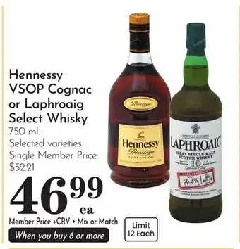 Hennessy VSOP Cognac or Laphroaig Select Whisky Discount at Pavilions