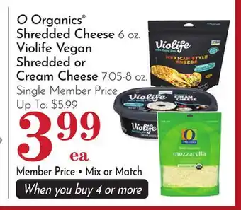 O Organics Shredded Cheese 6 oz. Violife Vegan Shredded or Cream Cheese 7.05-8 oz deals and online offers from the current Pavilions weekly ad