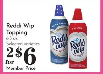The price of Reddi Wip Topping can be found at the top of the page, together with the dates during which the offer is available. You can also check the price in the current Pavilions weekly ad or on the Pavilions website. Promotional offers assure you of buying Pavilions products at the lowest price.